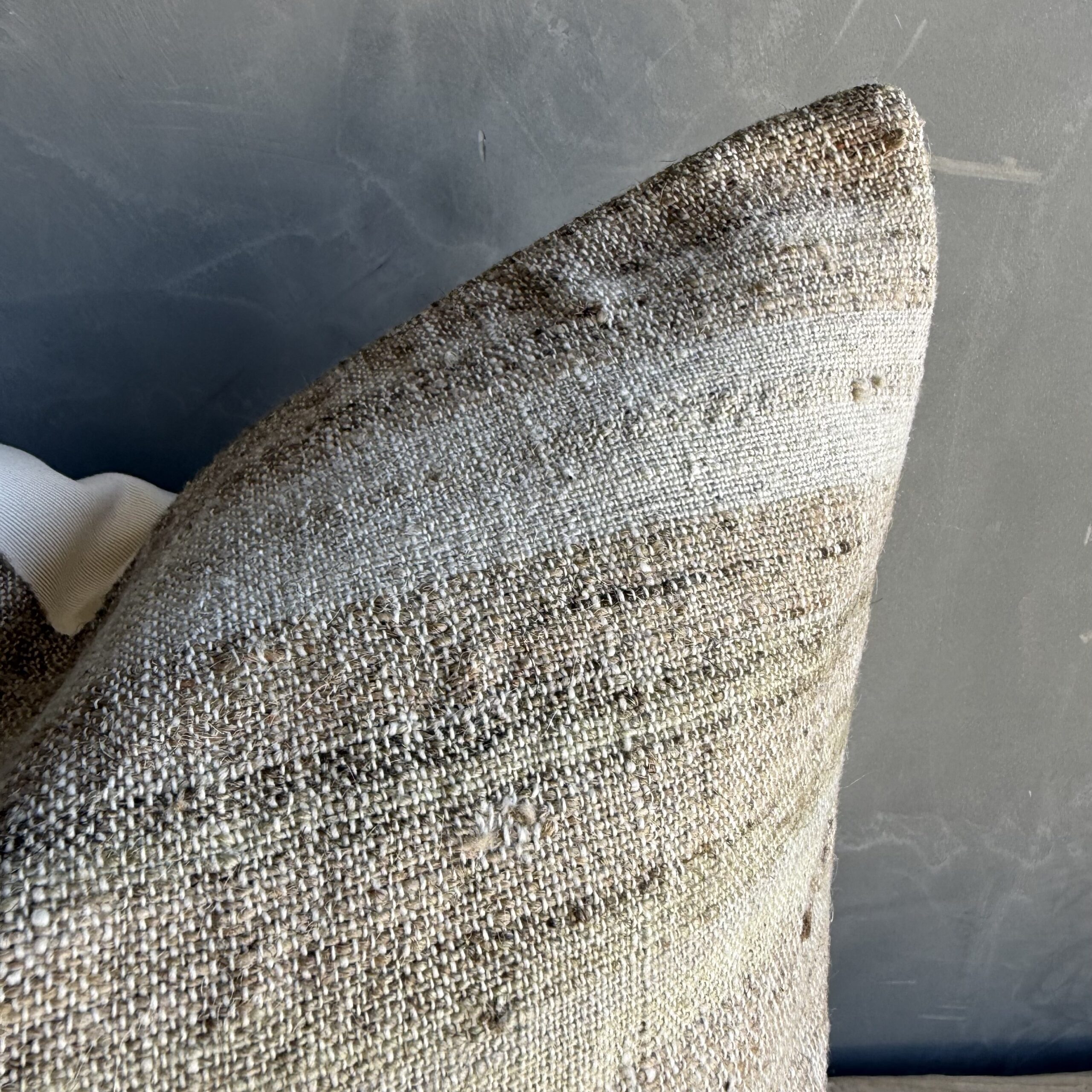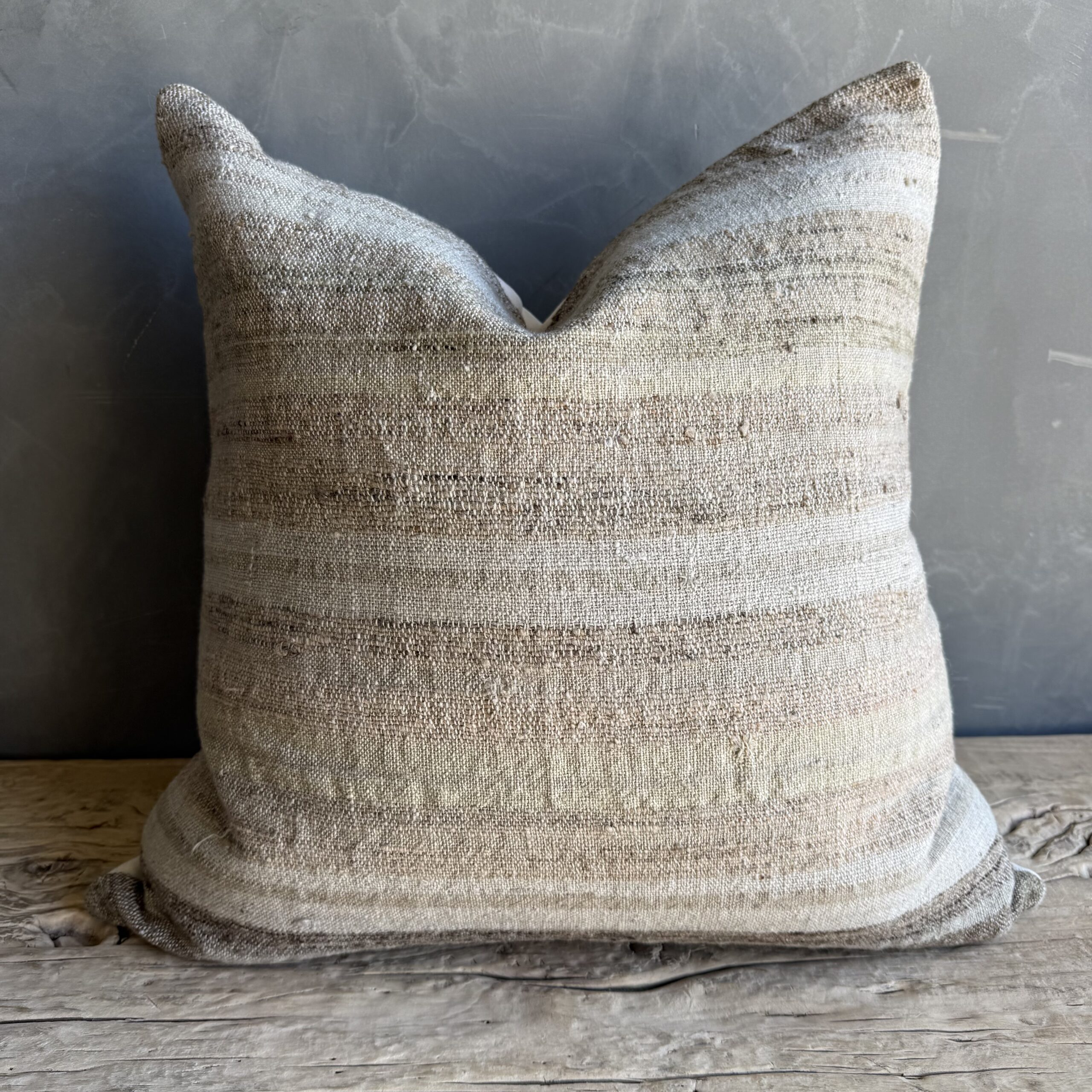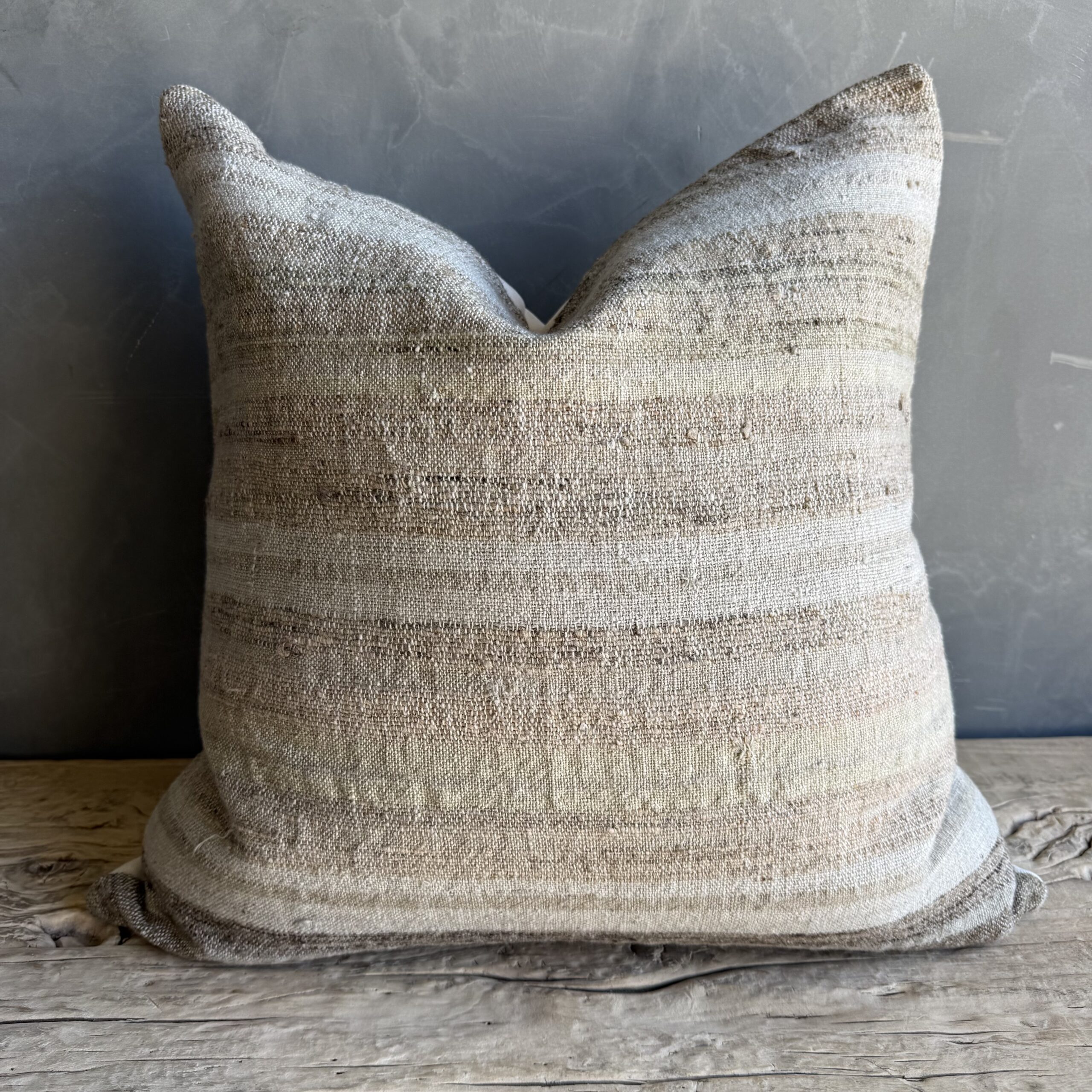 Each pillow is backed in a high-quality linen blend, chosen for its durability and soft, natural texture. The contrast between the vintage textile and the clean linen backing creates a balanced, versatile design that works beautifully in both relaxed and refined spaces.