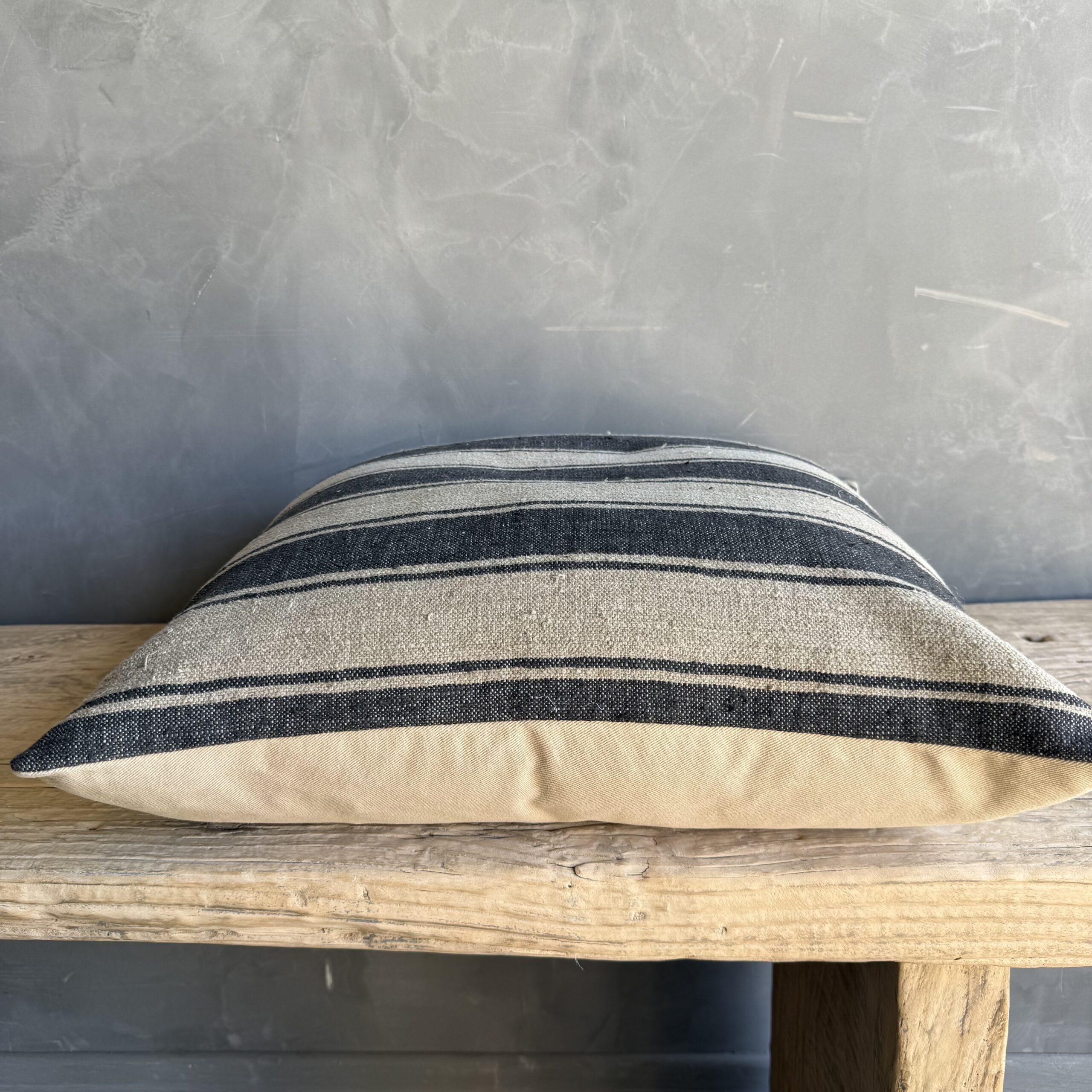 Each pillow is backed in a high-quality linen blend, chosen for its durability and soft, natural texture. The contrast between the vintage textile and the clean linen backing creates a balanced, versatile design that works beautifully in both relaxed and refined spaces.