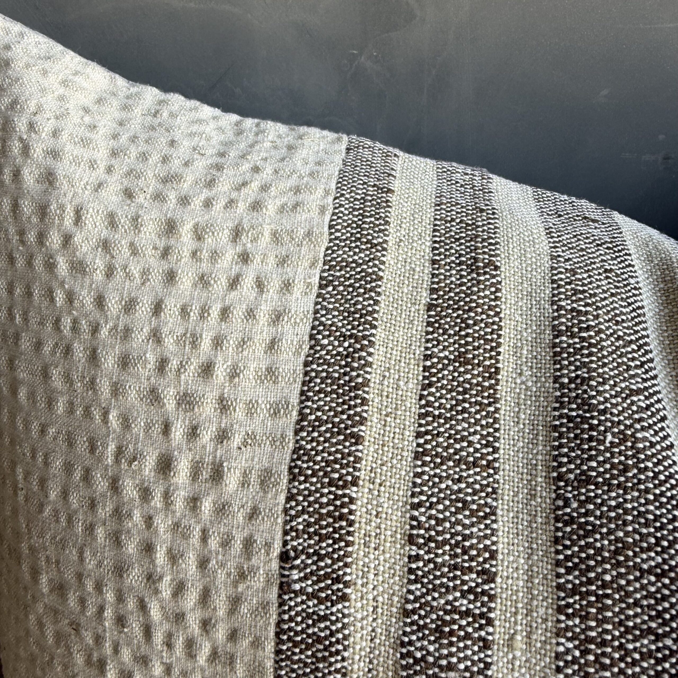 Finished with a soft, high-quality linen backing, this pillow blends rustic heritage with refined sophistication. A hidden zipper closure allows for easy insert removal while maintaining a clean, tailored look.