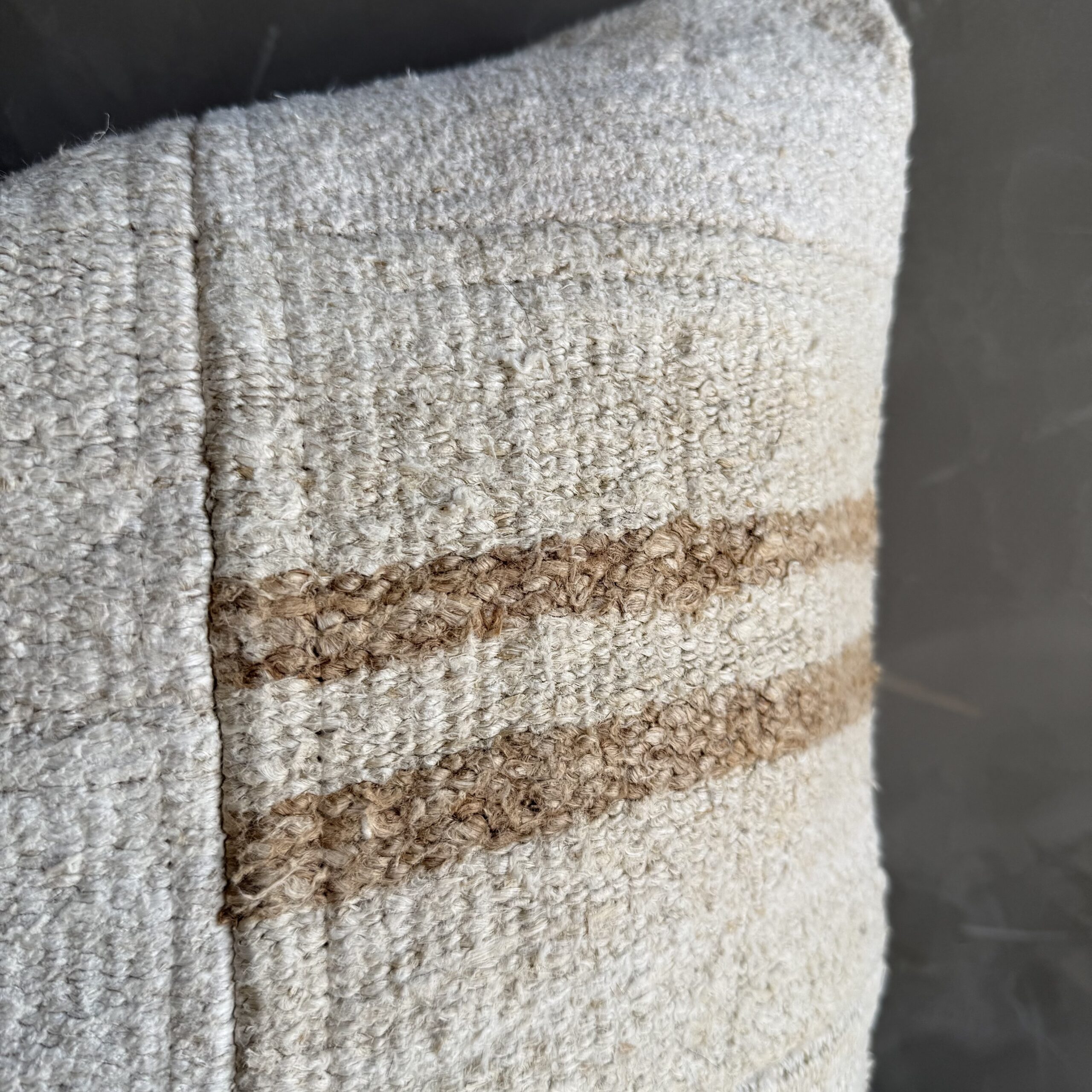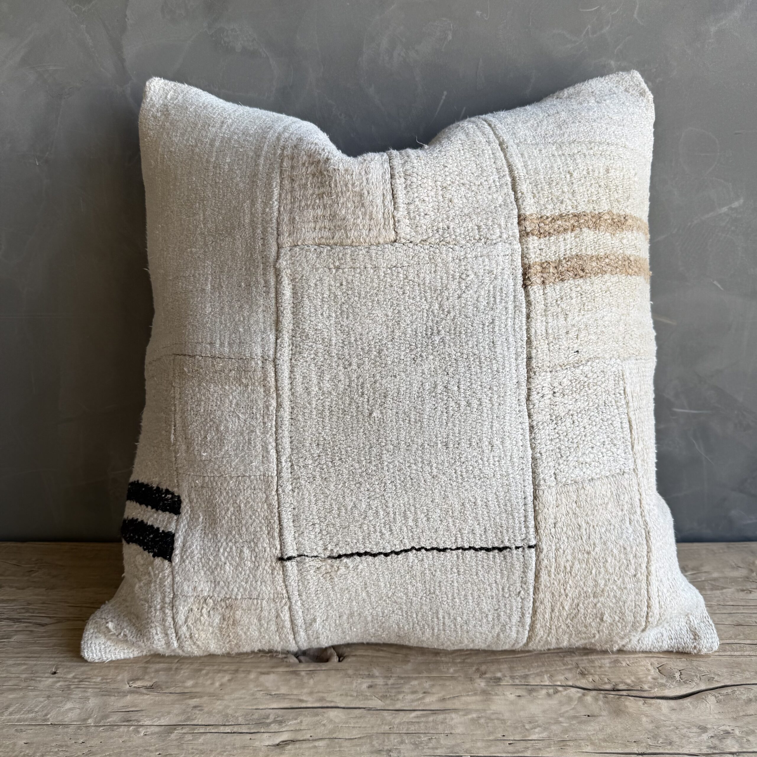 – Crafted from authentic vintage Turkish hemp rugs, each pillow is a one-of-a-kind statement piece rich in history, texture, and character. The naturally aged hemp features beautiful tonal variation and subtle patina that only time can create, bringing warmth and depth to any space.