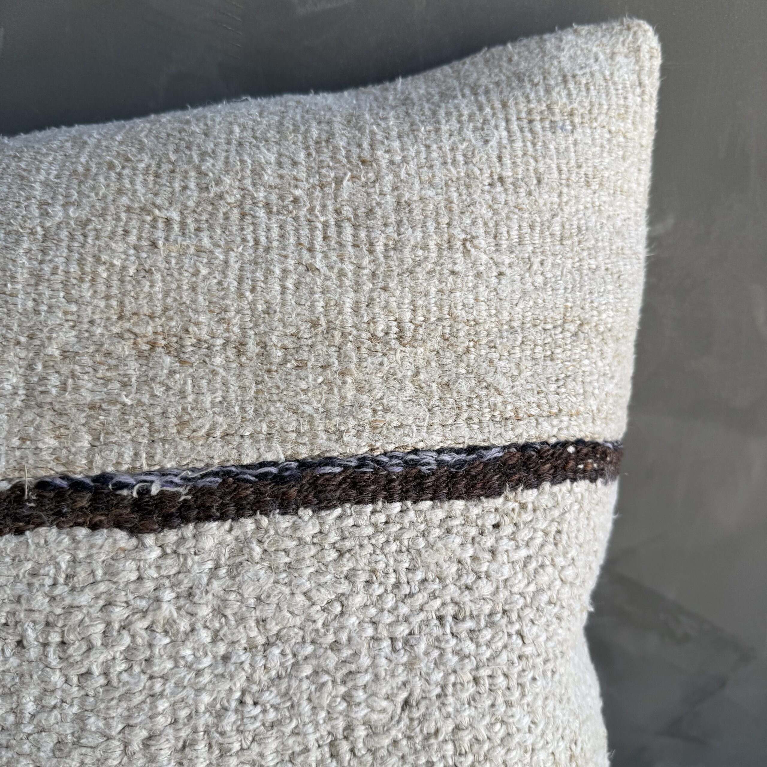 – Crafted from authentic vintage Turkish hemp rugs, each pillow is a one-of-a-kind statement piece rich in history, texture, and character. The naturally aged hemp features beautiful tonal variation and subtle patina that only time can create, bringing warmth and depth to any space.