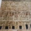 Vintage wool and natural fiber rug Colors: Tan, brown, gold, black, and creams.