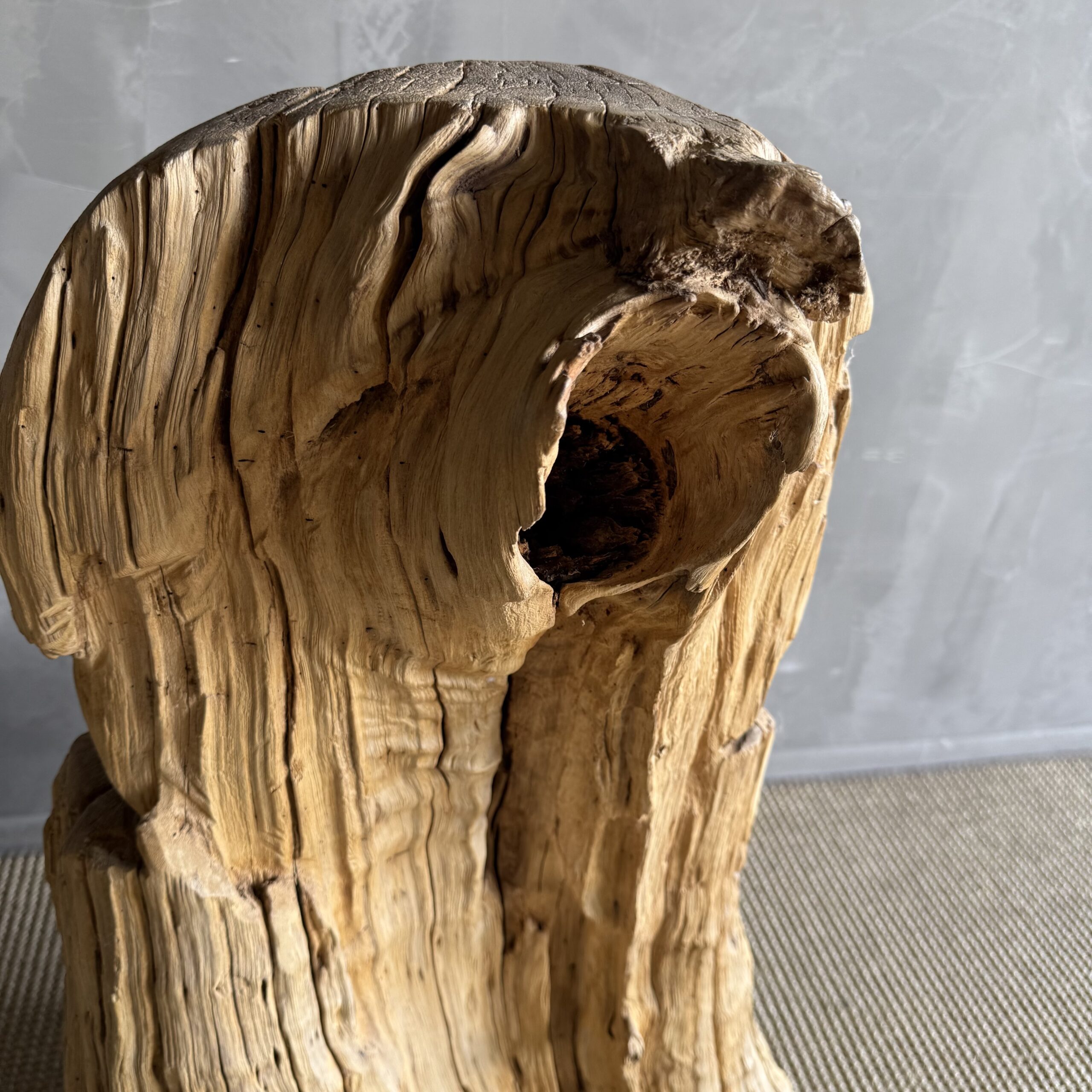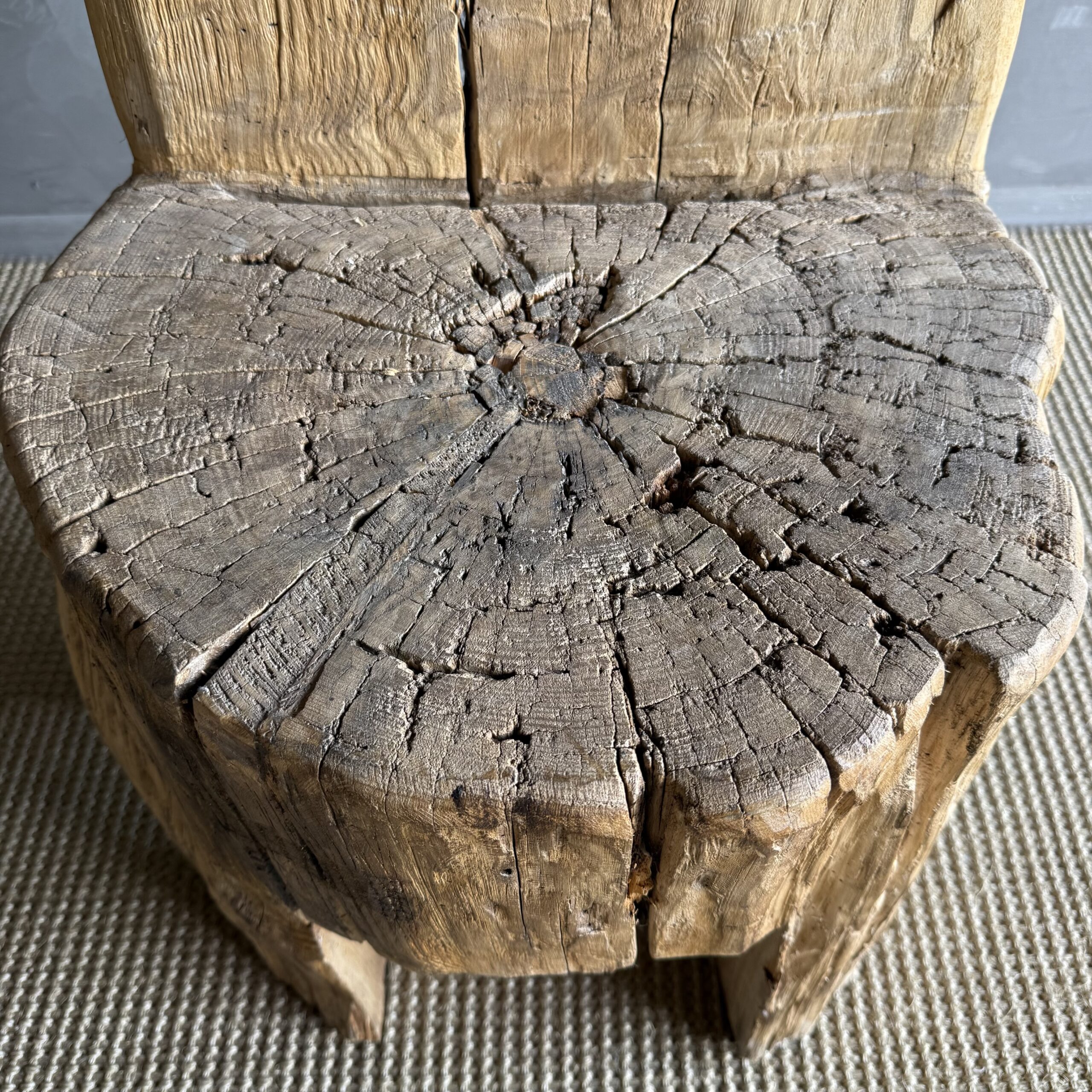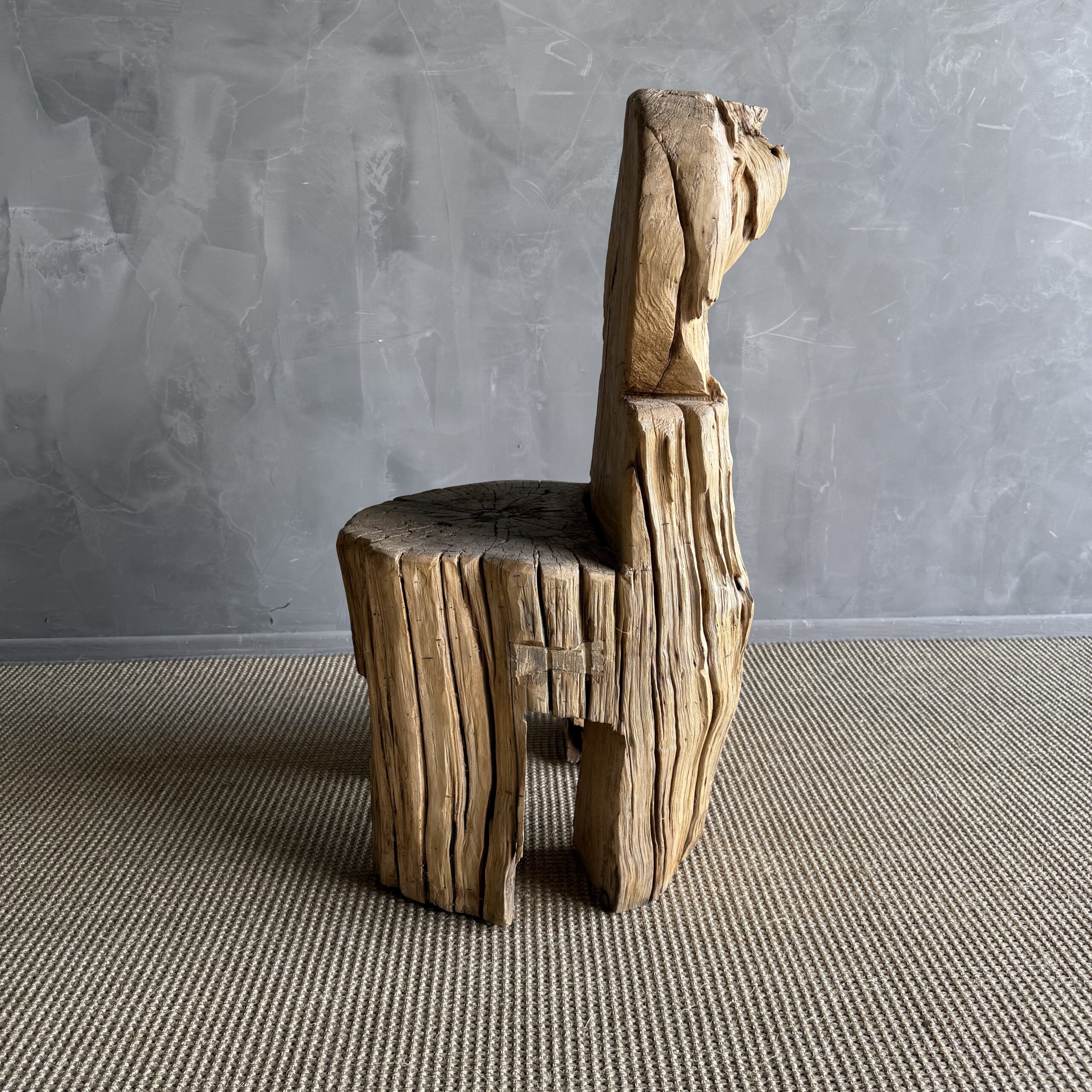 Wooden Stump Chair carved from a solid tree trunk.